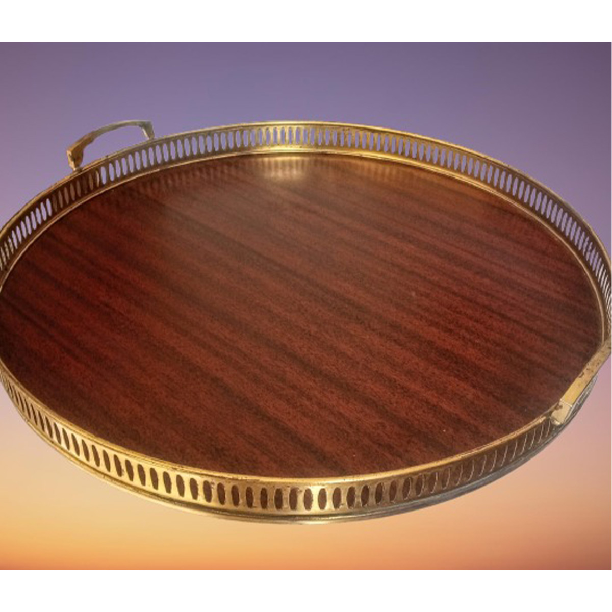 Vintage serving tray with wood and gold finish metal rail. Use for serving or place as a centre piece on a coffee table with decor.