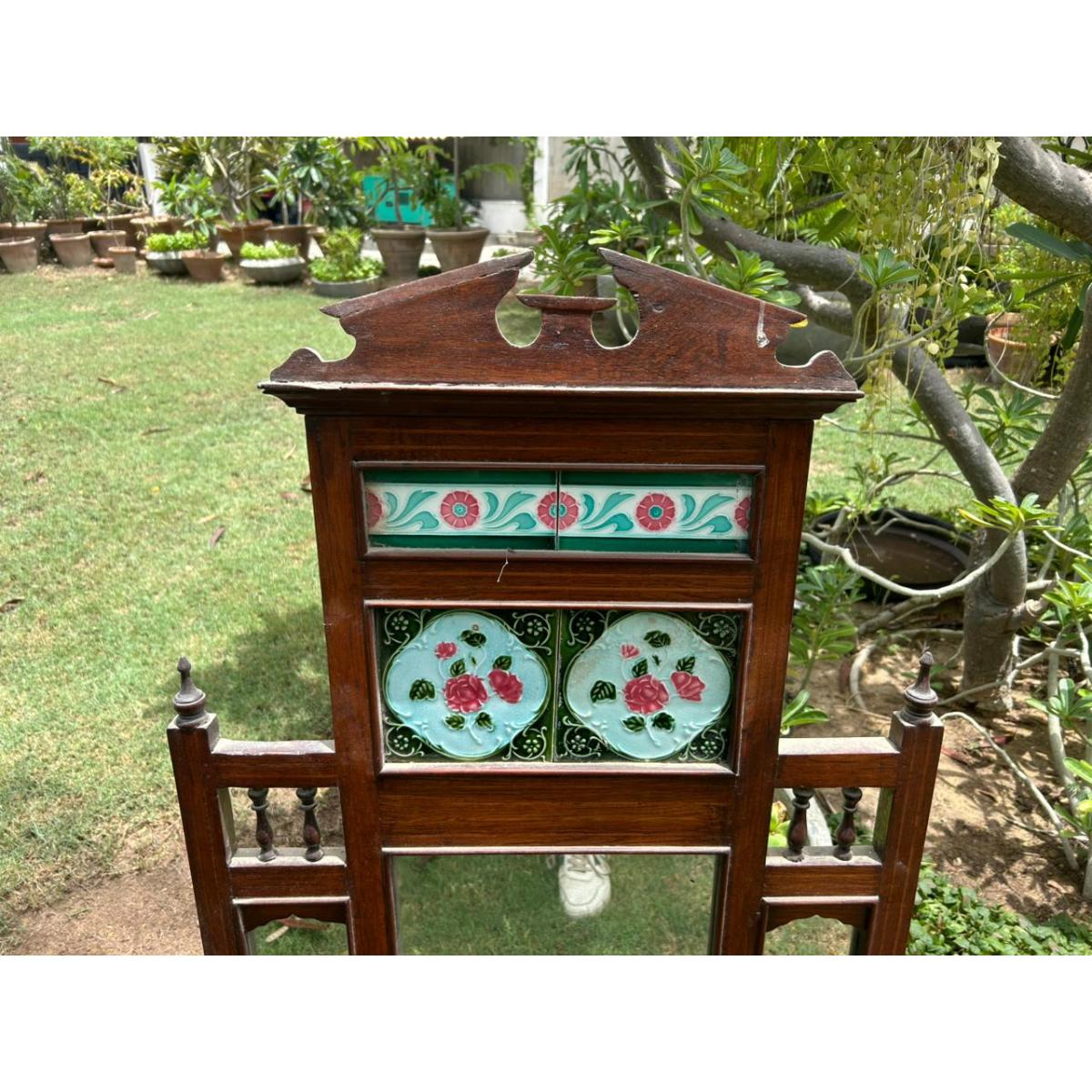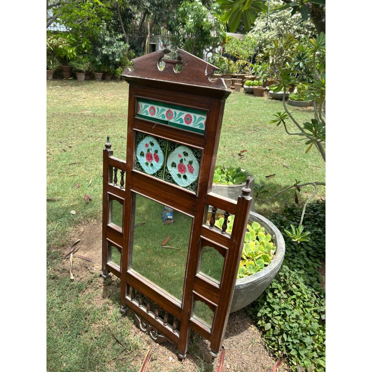| Material | Solid Sheesham Wood | Glass Mirror Panels | Hand-painted Ceramic Tiles |