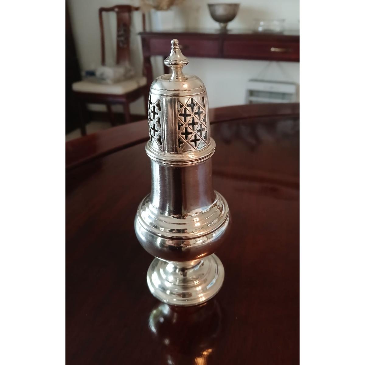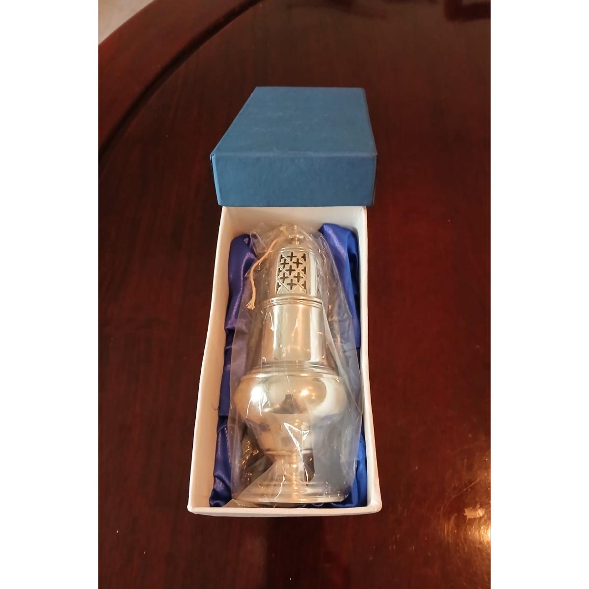 Vintage silver plated sugar shaker. Made in UK. Circa 1920s. Heavy, good quality. Boxed.