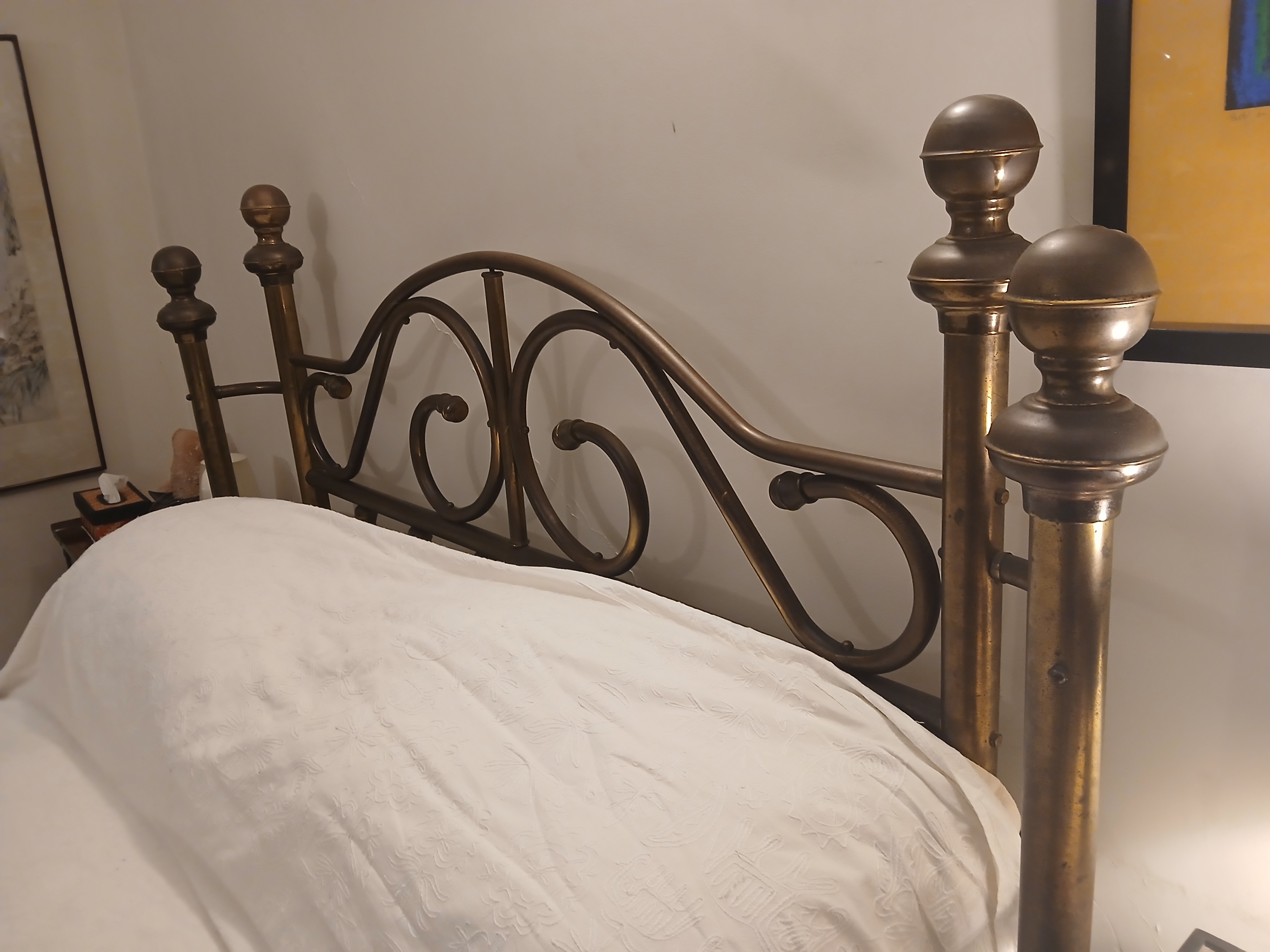 Elegant solid brass queen sized bed originally bought in Korea. Very sturdy with a strong, solid brass and wood frame.