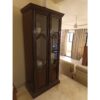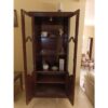 A vintage-style wood cabinet with glass panels, perfect for displaying your fine china or decorative items. Crafted from solid wood and plywood with intricate detailing, it adds a touch of sophistication to any room.
